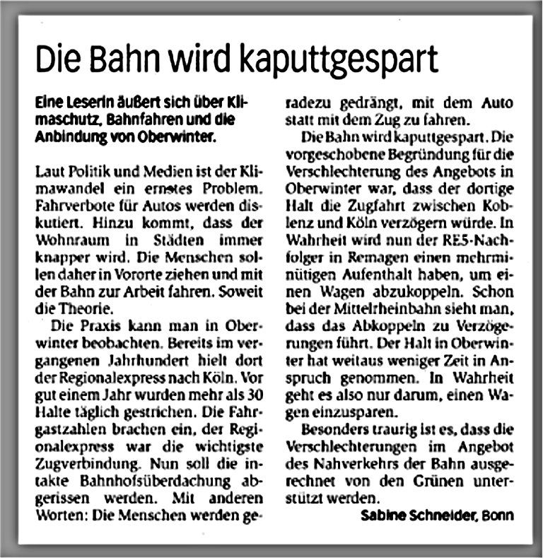 Leserbrief aus dem Bonner General-Anzeiger, September 2022