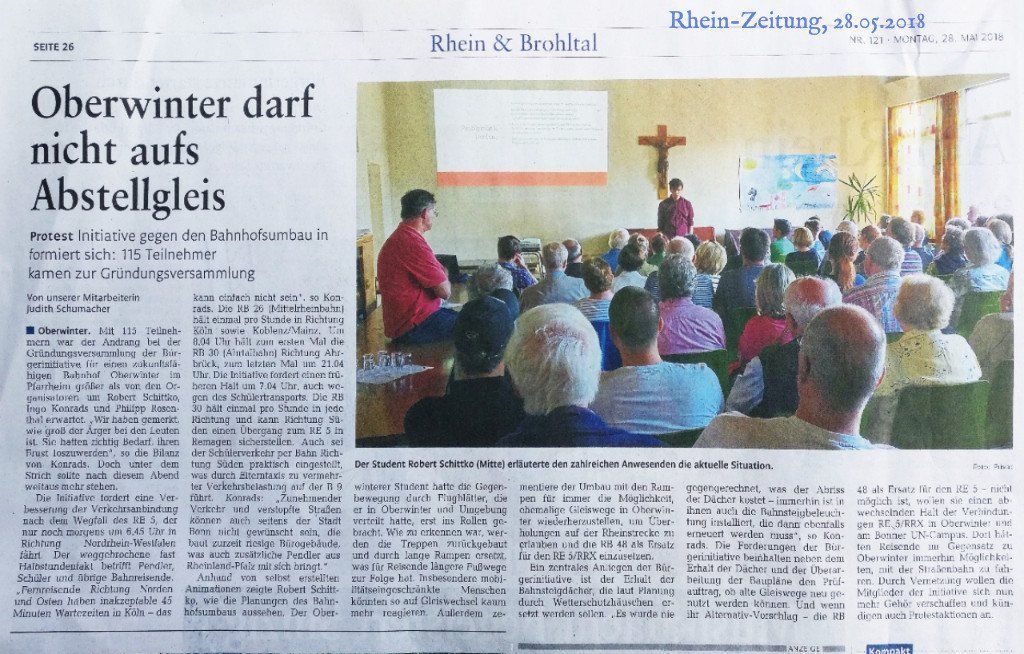 Bonner General-Anzeiger vom 23.01.2020: Bald rollen die Bagger an: Die Bahnsteigdächer von 1913 am Oberwinterer Bahnhof sollen abgerissen werden. Die Bürgerinitiative Bahnhof Oberwinter beklagt „kulturelle Barbarei“.